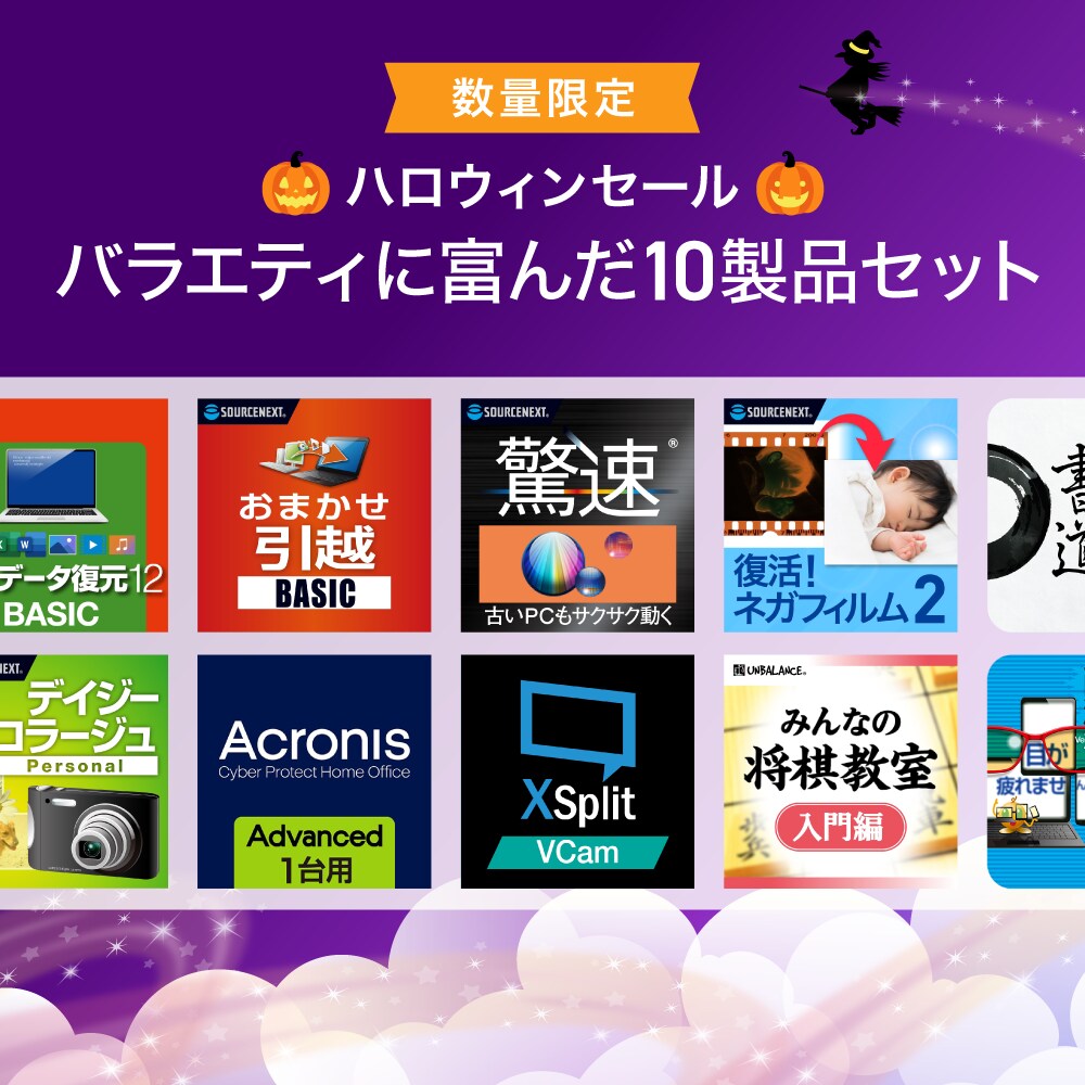 ソフトウェアメーカーのソースネクスト公式サイトでバラエティ10製品セット販売中です(2025年10月31日まで)。